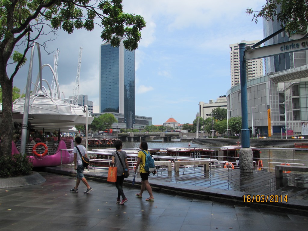Having walked around this and then the Chinese and Japanese gardens, where we climbed to the top of the Pagoda, we took a taxi back down town to the waterfront along the Singapore river where electric ferries ploughed back and forth and had a Thai lunch, very nice but I had to take out a second mortgage.