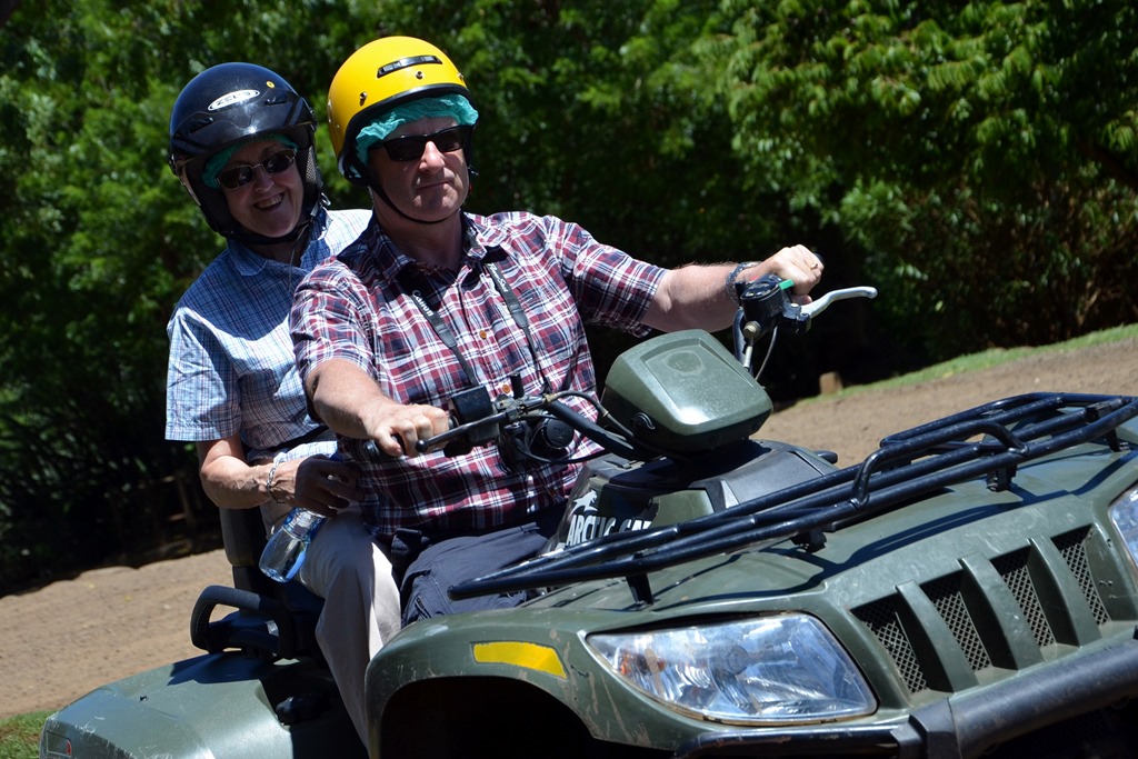 Our bit of fun for the day evolved a 4×4 quad bike safari on a converted sugar farm to see all the “native” animals in their natural habitat, like zebra, ostrich, deer and pheasant…yes I know, they aren’t exactly native but the dodo has died out from here, so we had to use our imagination. Anyway it was fun and the stupid ostriches kept running by us at full tilt. I guess the staff must feed the birds from the quads so they associated the quads with food and end up running towards,as opposed to away from the bikes.